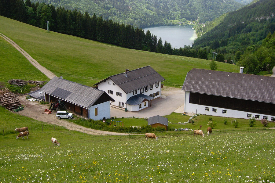 Unser BioBauernhof liegt auf 830m Seehöhe oberhalb vom Lunzer See und ist umgeben von Wiesen, Wäldern und Bergen.